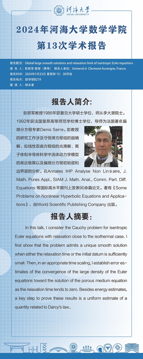 Bwin官网第13次学术报告:Global large smooth solutions and relaxation limit of isentropic Euler equations