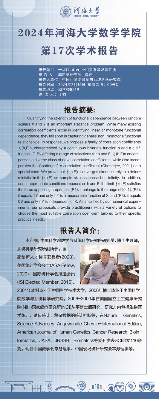 Bwin官网第17次学术报告:一类Chatterjee相关系数及其性质