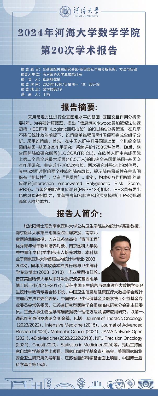 Bwin官网第20次学术报告:全基因组关联研究基因-基因交互作用分析策略、方法与实践