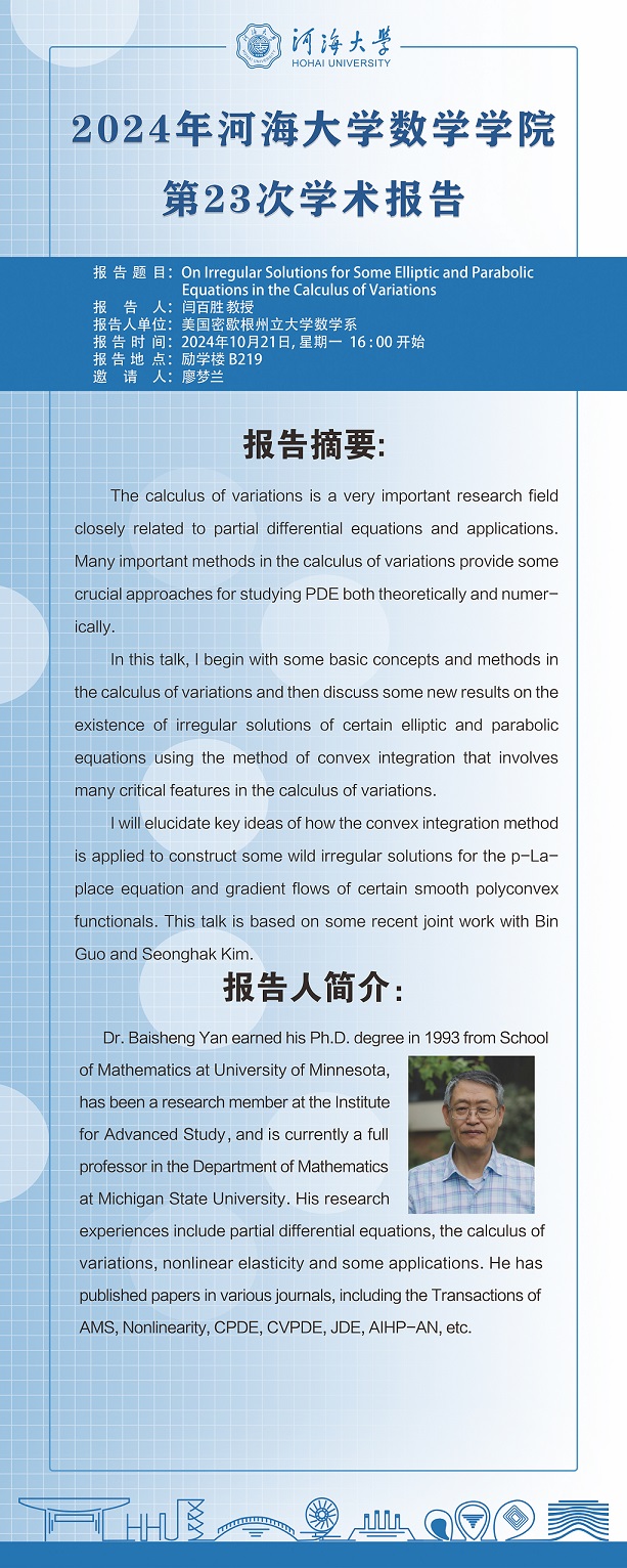 Bwin官网第23次学术报告:On Irregular Solutions for Some Elliptic and Parabolic Equations in the Calculus of Variations