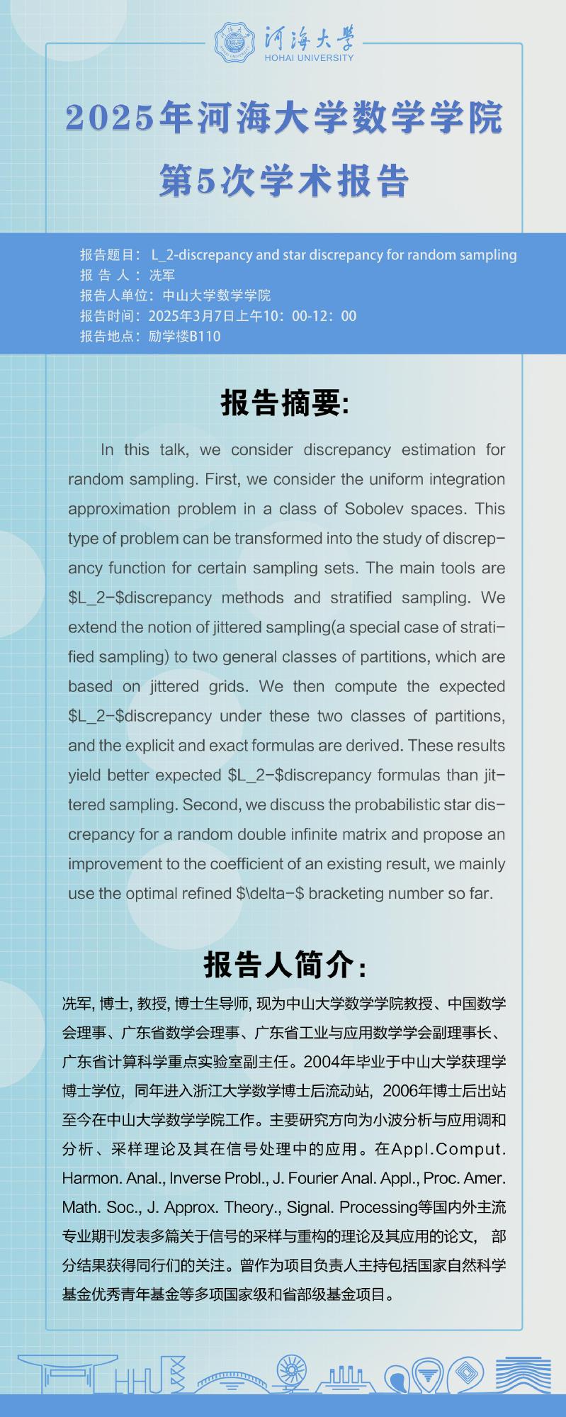 Bwin官网第5次学术报告:L_2-discrepancy and star discrepancy for random sampling