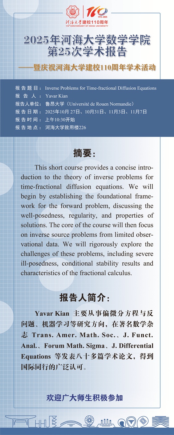 Bwin官网第25次学术报告:Inverse Problems for Time-fractional Diffusion Equations